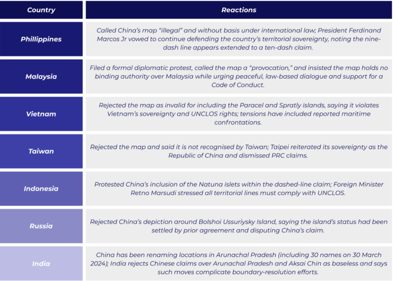 Figure 2: Official reactions to China’s 2023 standard map by multiple countries directly affected by its claims.